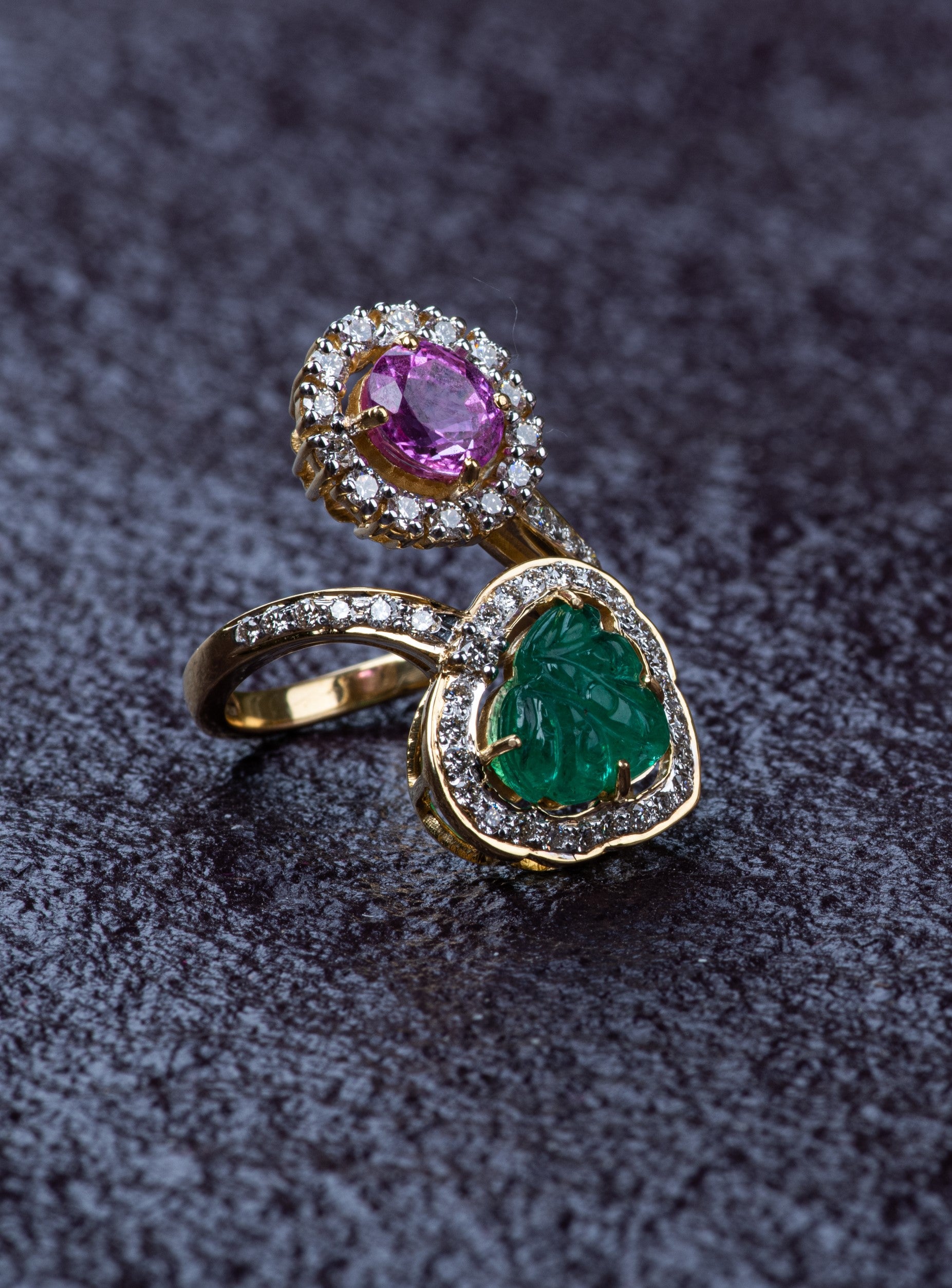 Gul captures the romance of the Rose Gate, with delicate pink opals contrasted with carved emeralds that evoke the timeless beauty of a blooming garden.