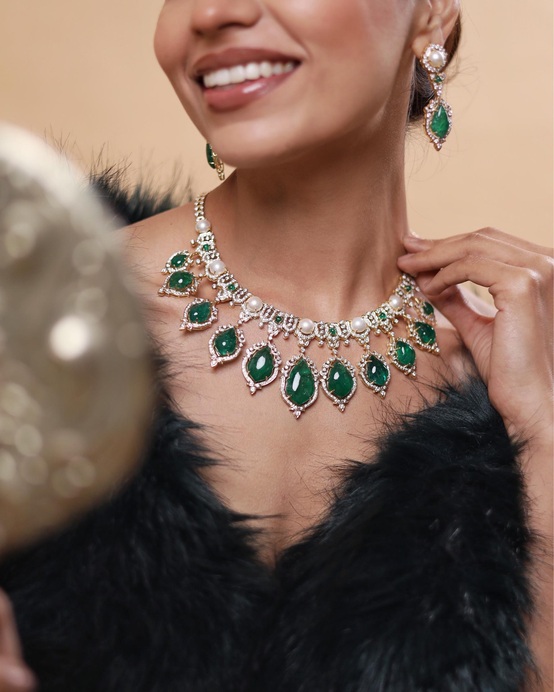 Literally translating to "matchless" or "unique" in Persian, Benazeer is a celebration of true individuality. Each necklace set is designed around an invaluable gemstone emphasizing on its distinctness and unparalleled quality. It’s a statement of singular elegance, where no two pieces will ever be the same.